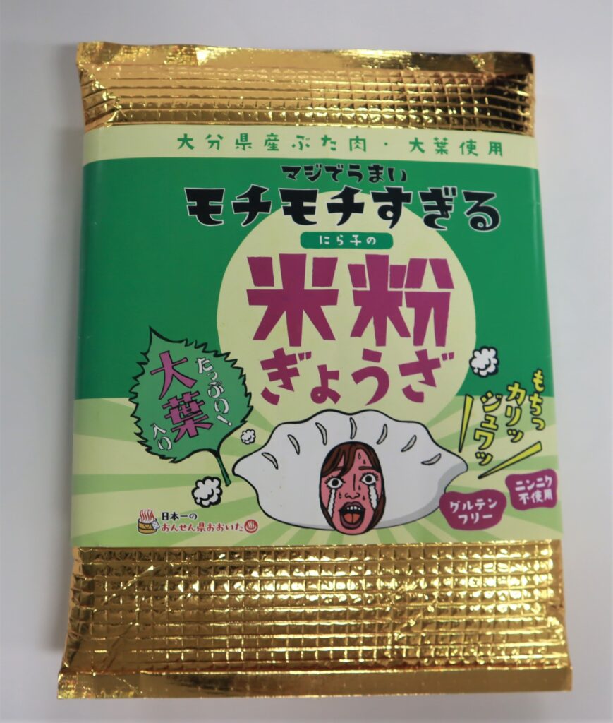 大分市産大葉をたっぷり使用し、大分県産豚バラ肉100%使用。グルテンフリーの米粉の皮で丁寧に包みました。